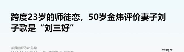 澎湃新闻——2016-09-14——跨度23岁的师徒恋,50岁金炜评价妻子刘子歌是“刘三好”